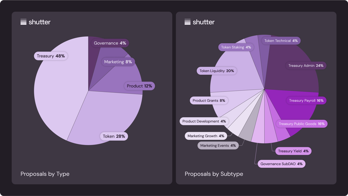 We love governance stats almost as much as we love building tools for governance. To celebrate Shutter’s progressive decentralization, we looked at the DAO by the numbers. We broke down the team’s governance history since 0x36 was formed.